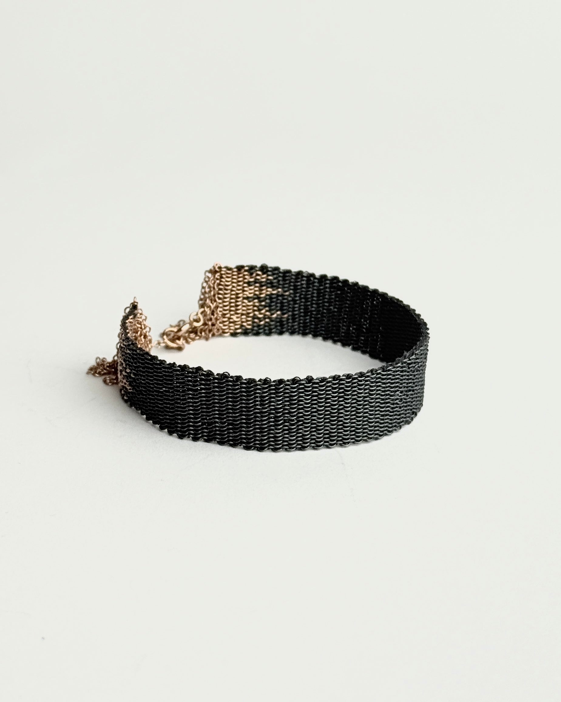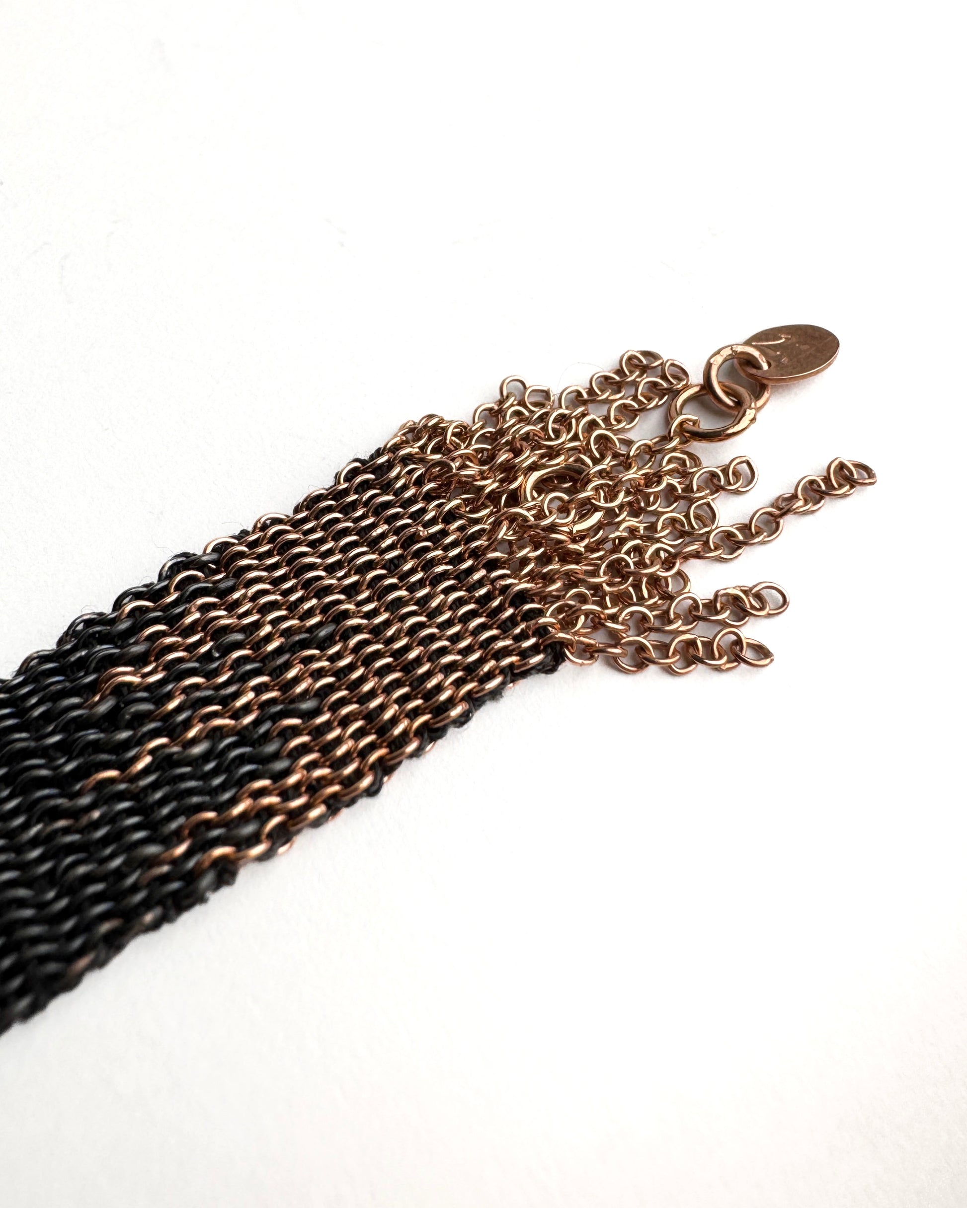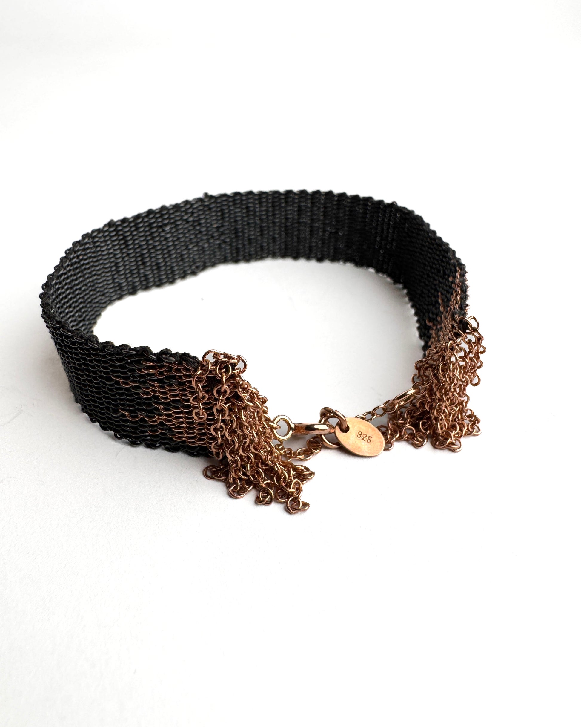 Handgefertigtes, gewebtes Silberarmband mit Rosévergoldung.