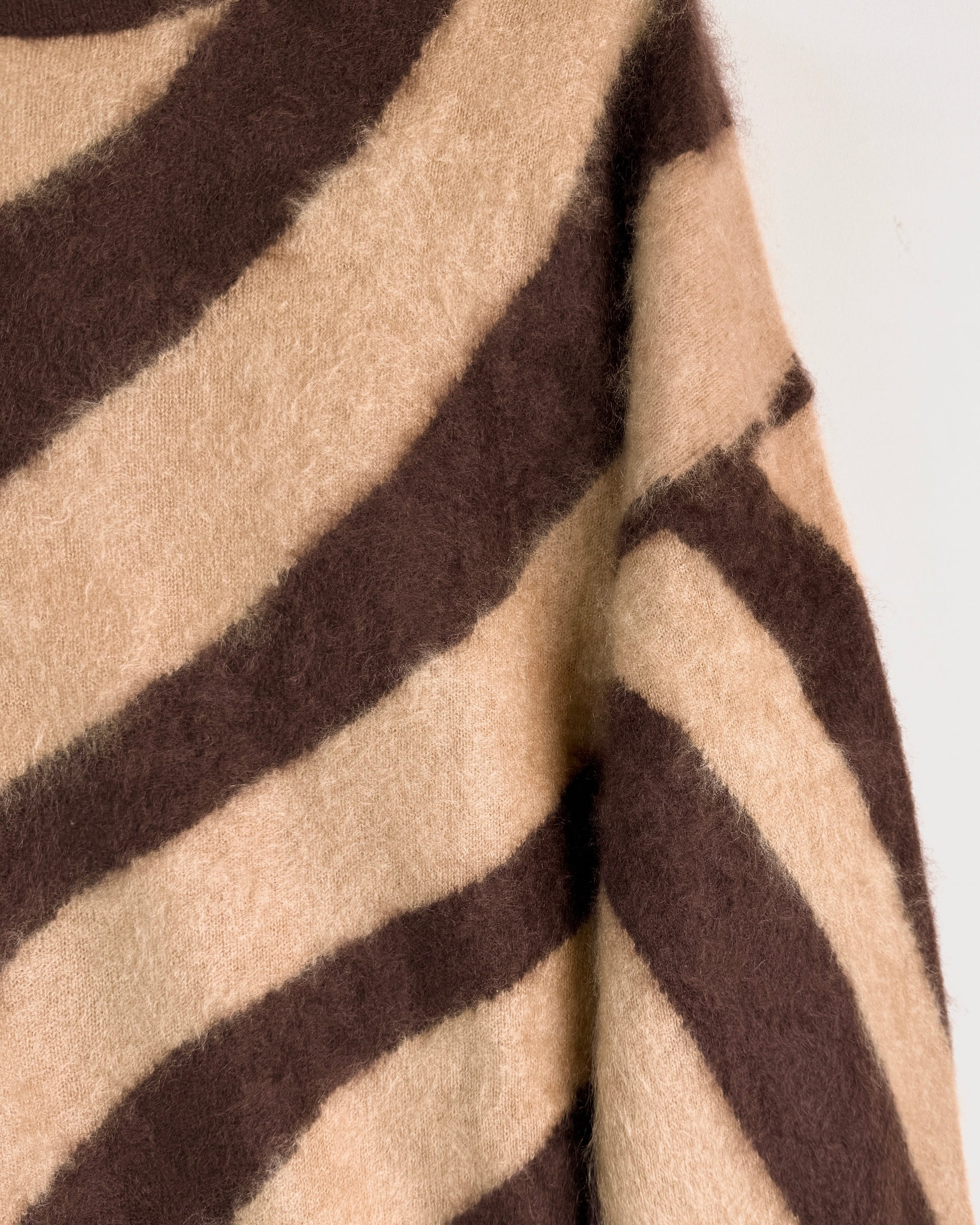 Sehr weicher, gebrushter Crewneckpullover im Zebramuster.