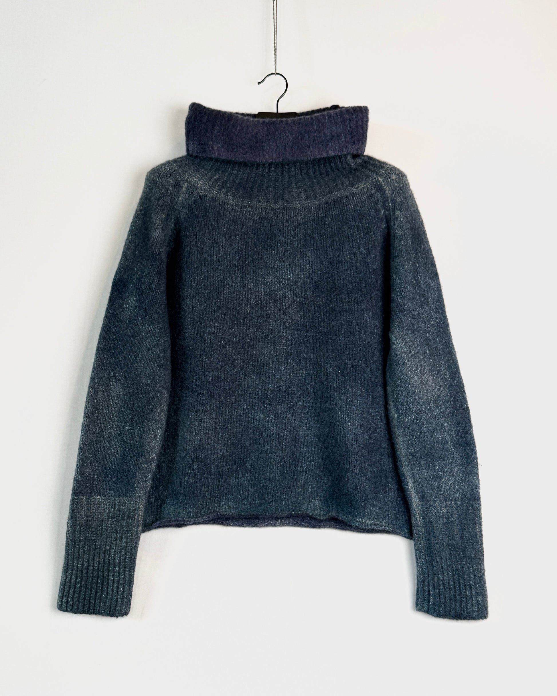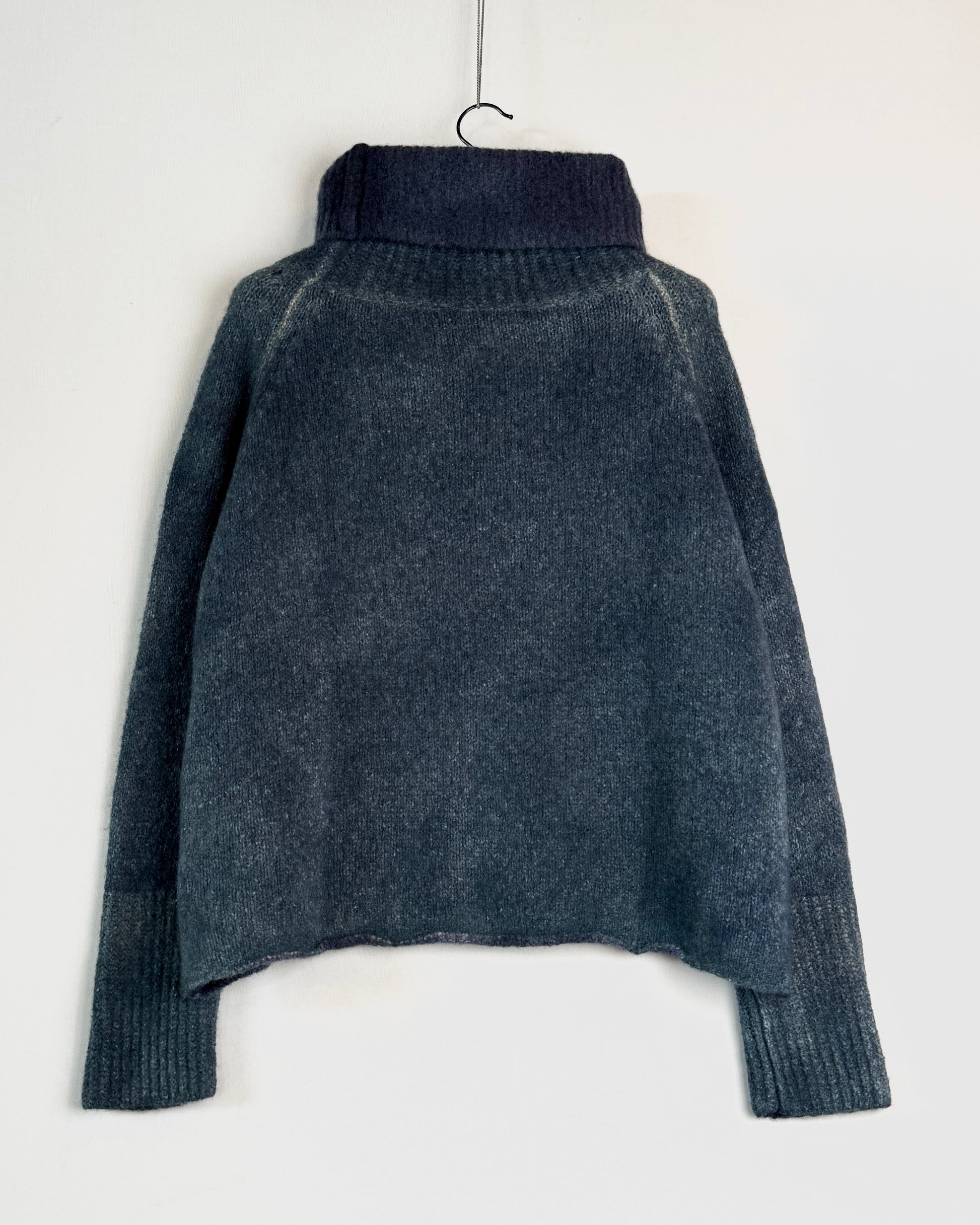 Handgebrushter, kastiger Pullover mit halsfernen Rollkragen.