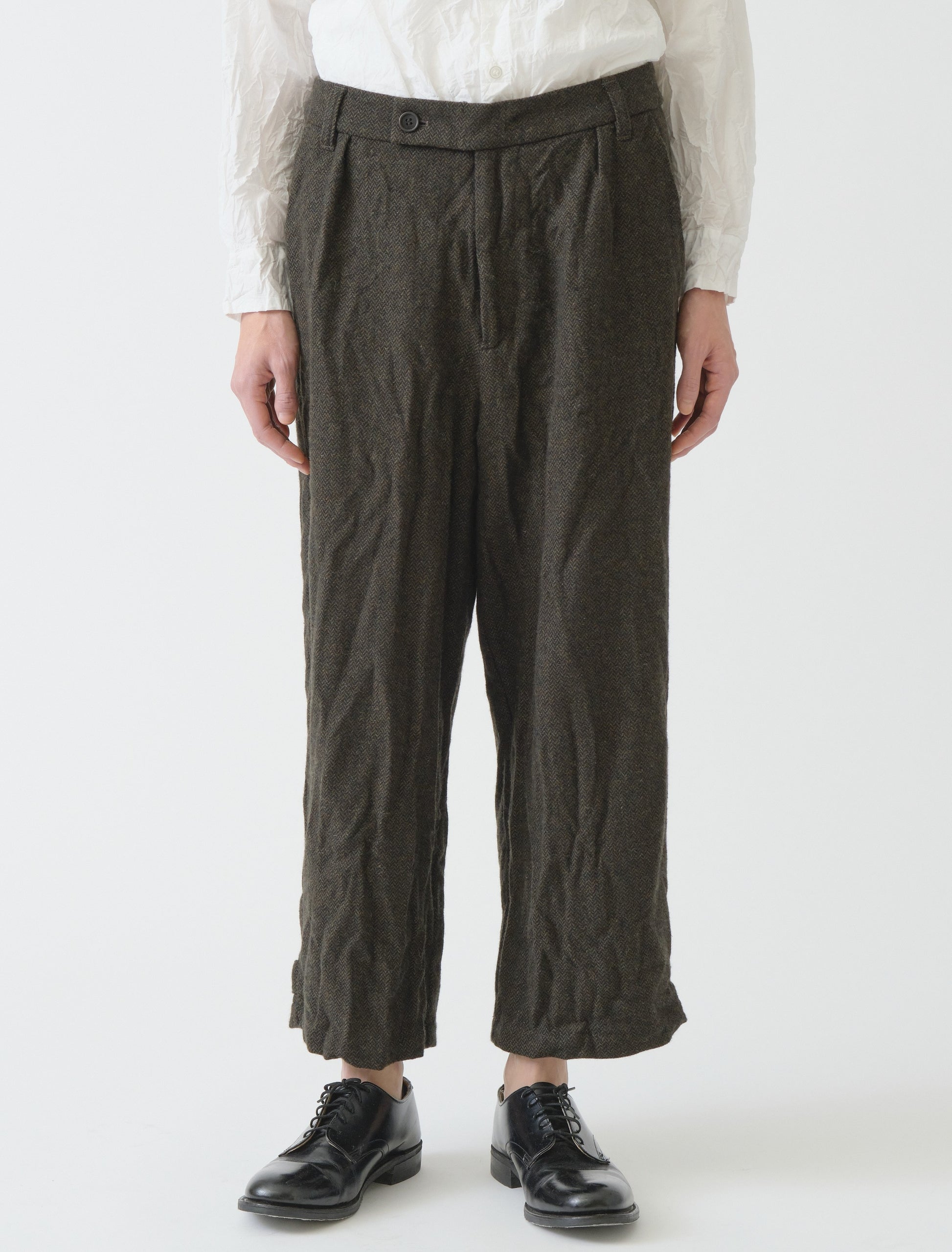 Eco wool herringbone wide pants