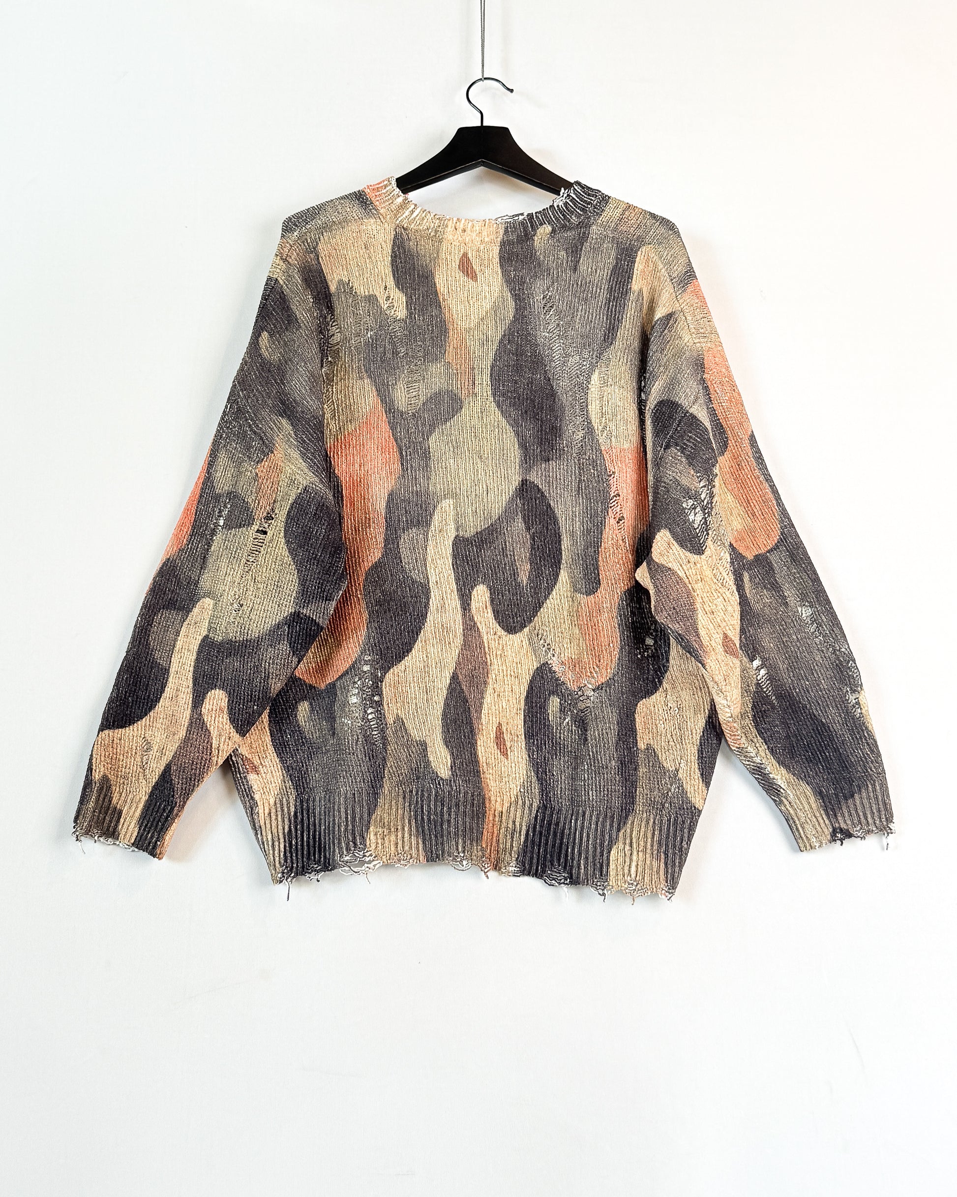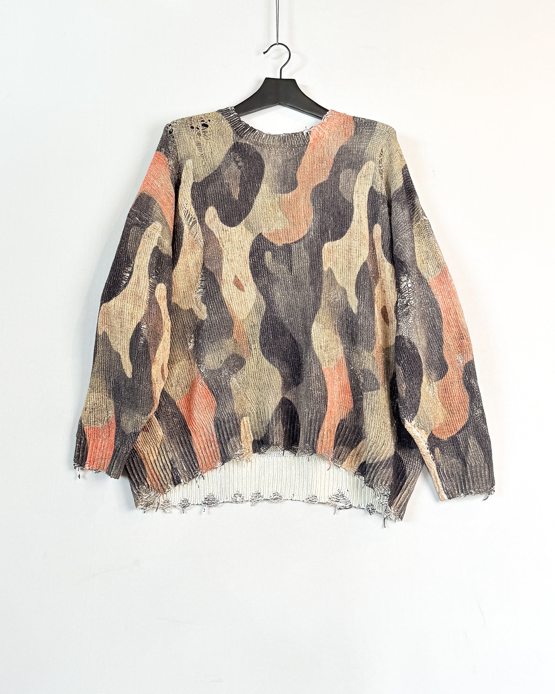 Used-Look, destroyed und aufgedrucktes Camouflagemuster.