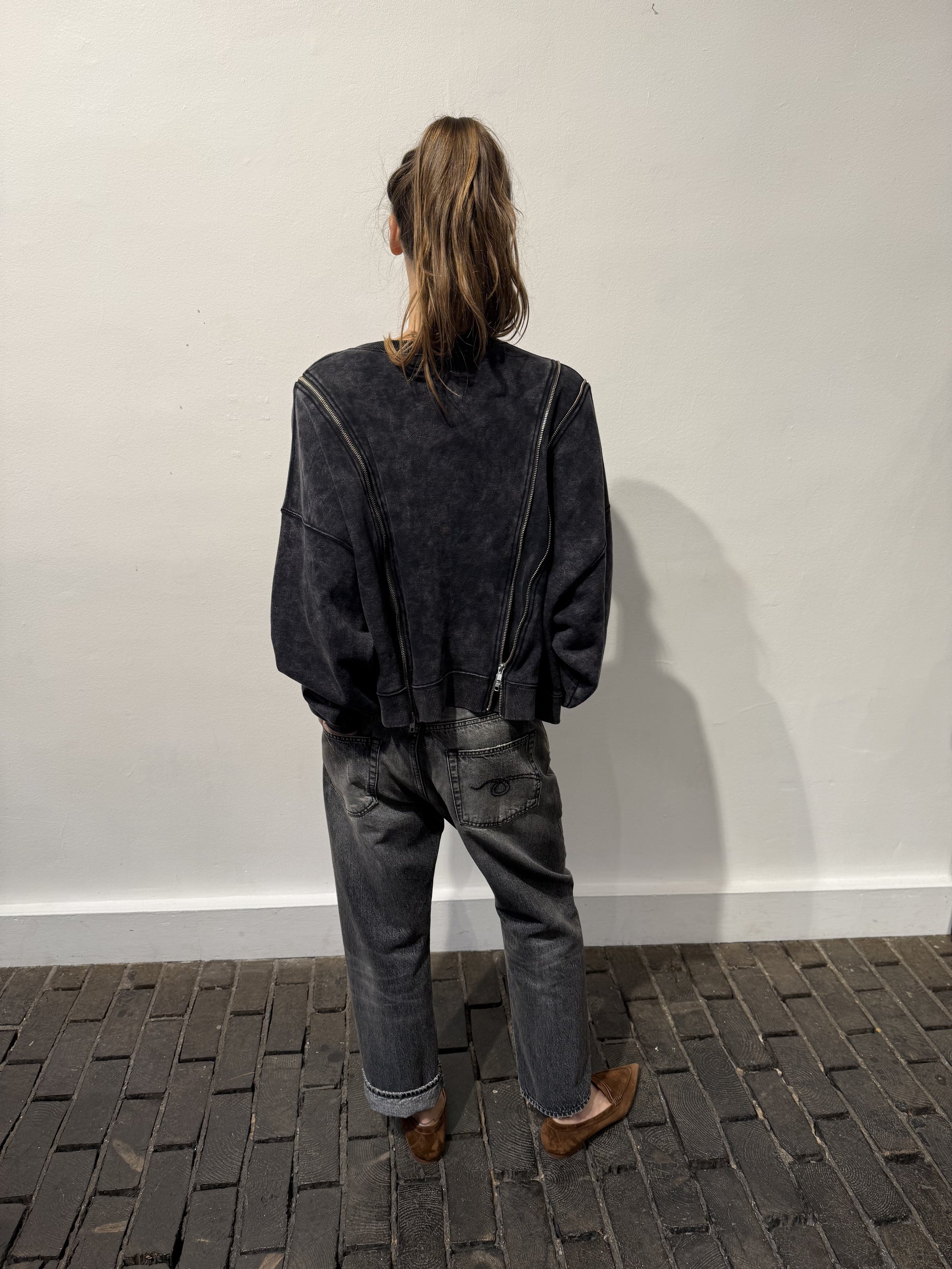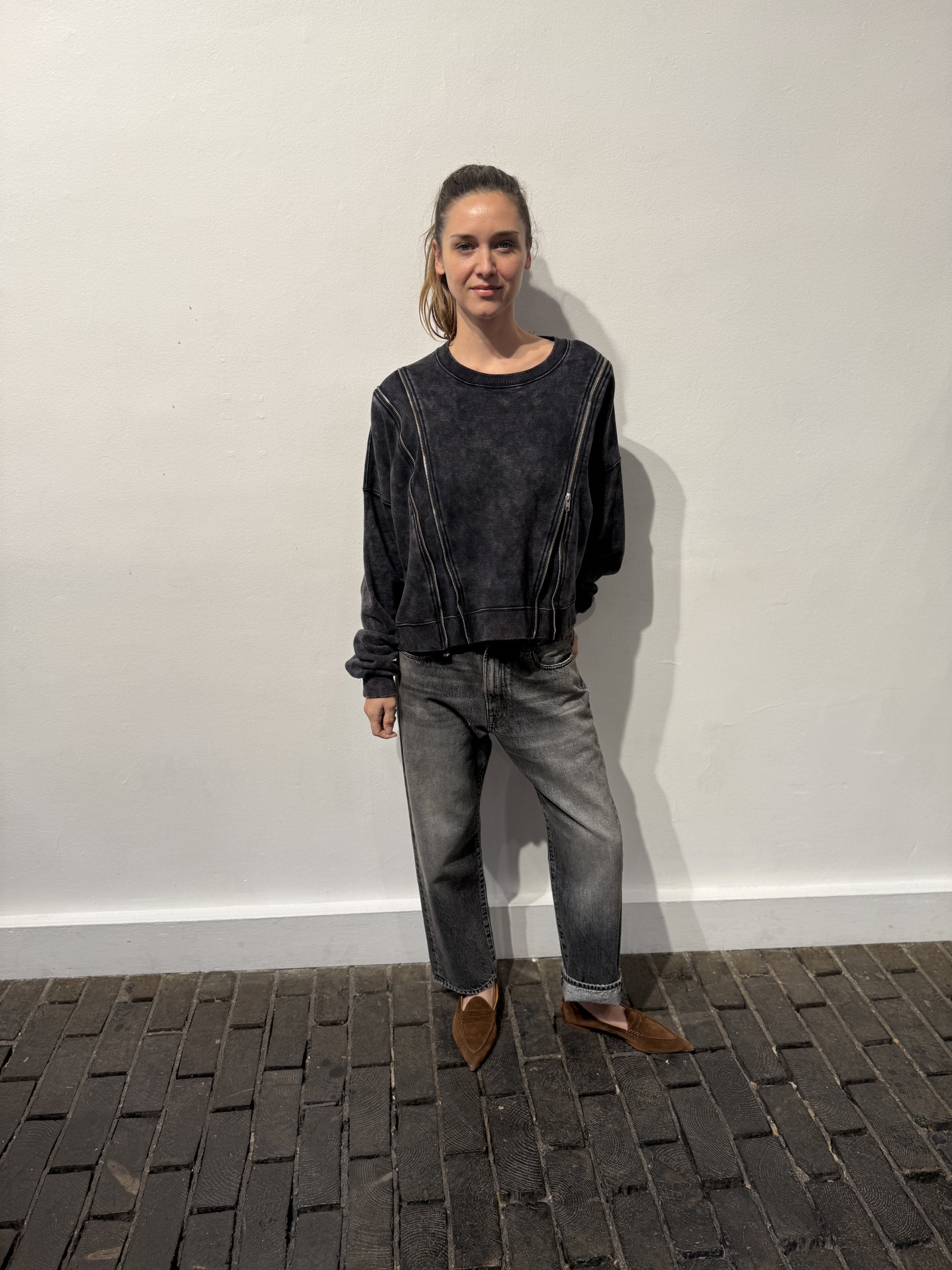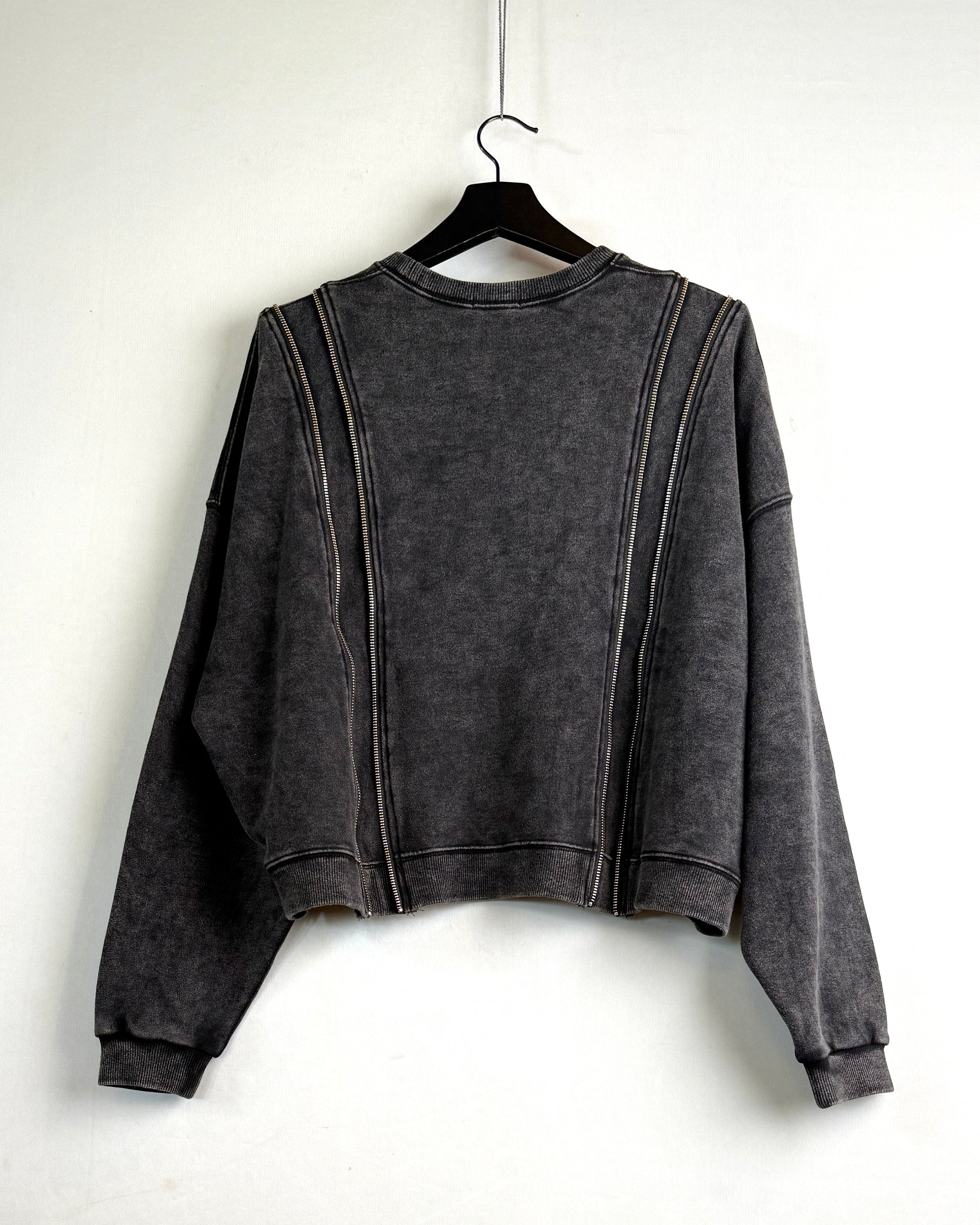 Kurzer, oversized Sweater mit Reißverschlüssen.