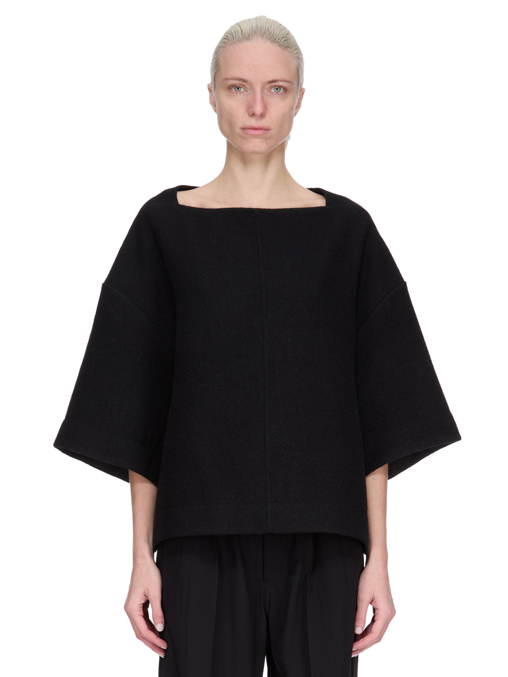Kastig geschnittenes, weites Shirt aus Schurwolle.
