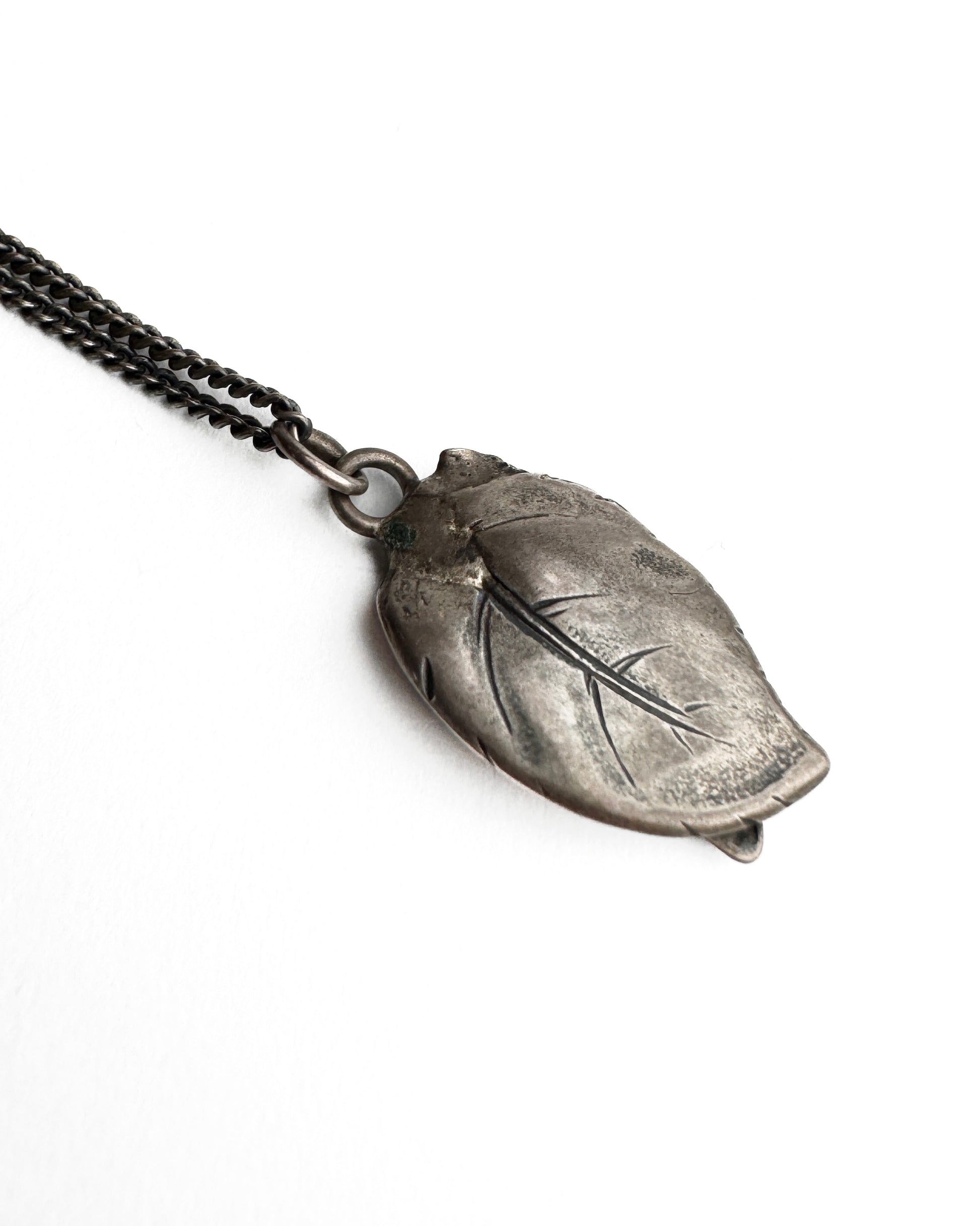Handgearbeitete Kette aus 925 Sterling Silber mit Blattanhänger.