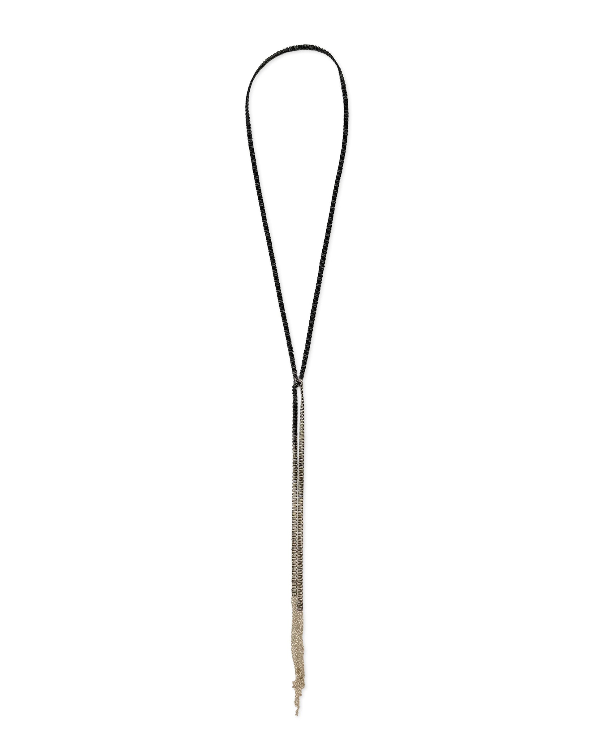 Feine Ketten werden mit einem Seidenfaden miteinander verwoben.