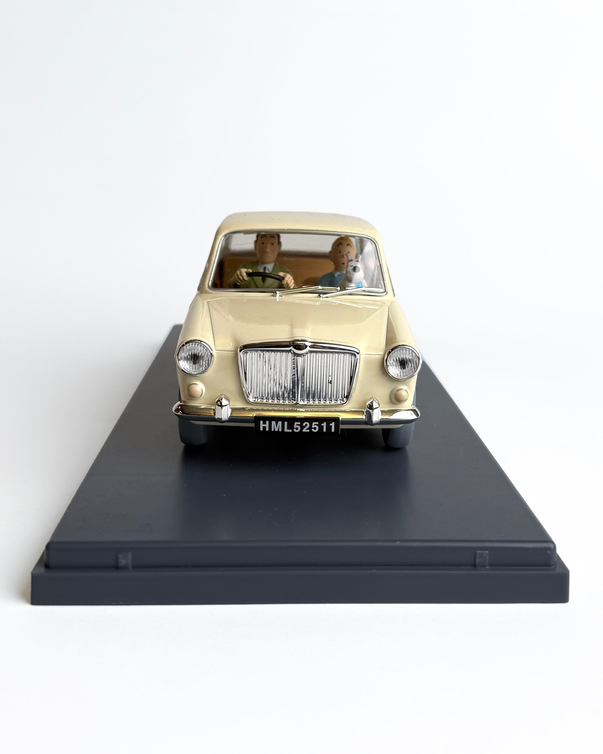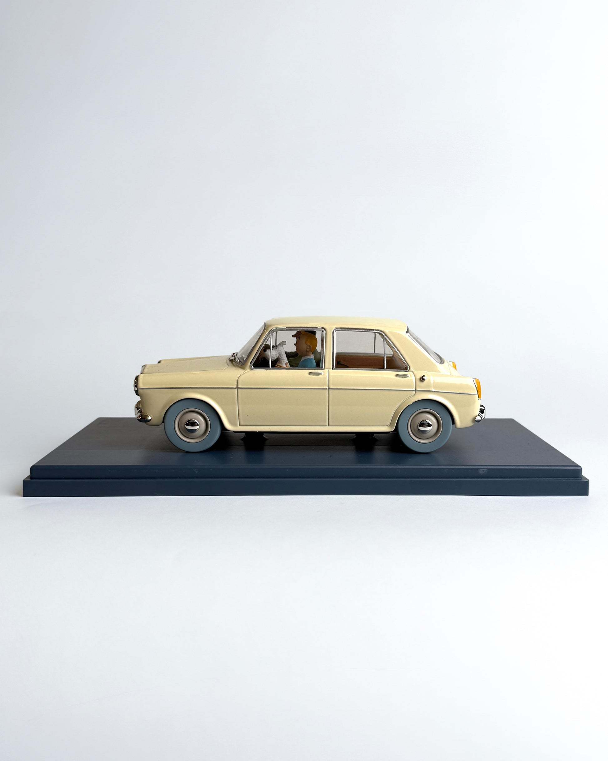 Detailliert nachgebautes Fahrzeug und Figuren aus einem Abenteuer von Tim und Struppi.