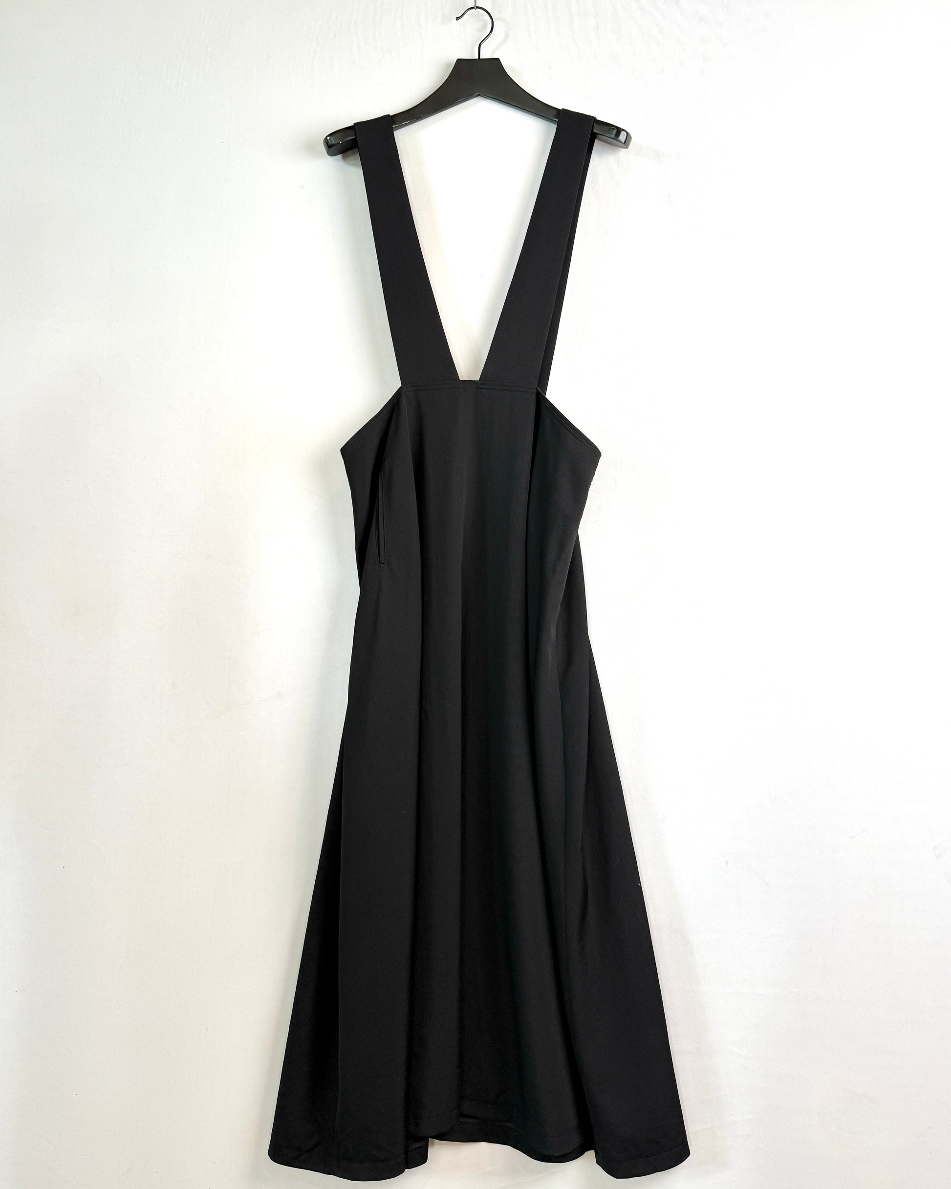 Langes Trägerkleid, nicht verstellbare Träger, Reißverschluß links, Einschubtasche rechts.